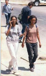 Derepente, nia besik ami, nia husu, “Imi timoroan.” “Los! Ami timoroan.” “Entaun, tuir ha’u.” Maibé, Maun Hugo sei sama ha’u-nia ain hodi bisi-bisi dehan labele fiar lalais lai tenke kuidadu. Maibé, mana ne’e kala haree ami sei dúvida, nia dehan, “Keta ta´uk! Ha’u buka hela timoroan sira para fila ba Timor.”