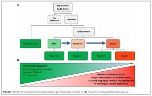 Kabe destaka iha ne’e katak tranzisaun entre resposta hosi sistema immune innato ho adaptativa ne’e krítiku tebes ba progresaun klínika pasiente infetadu ho coronavirus, tanba momentu krusiál ne’e akontese eventu immunoregulatóriu ba nia resposta ne’ebé sistema immune ativa hodi responde antijenu virál ne’ebé tama iha organizmu, tanba momentu ida ne’e bele hamosu skenáriu rua maka hanesan; Resposta immune protective ou resposta