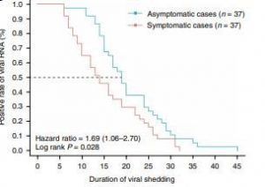 Kona-ba tempu inkubasaun (tempu hosi ema ida hetan infesaun to’o hatudu sintoma klínika) entre kazu assintomátiku e sintomátiku, Zou L et el. Afirma entre sira laiha diferensa ba períodu inkubasaun e estudu resente balun fundamenta katak karga virál deteta iha pasiente assintomátiku hanesan ho kazu sintomátiku, ne’e indika infesaun assintomátiku potensial tebes hodi transmite virus ba ema seluk.26