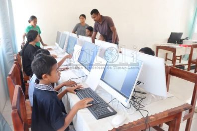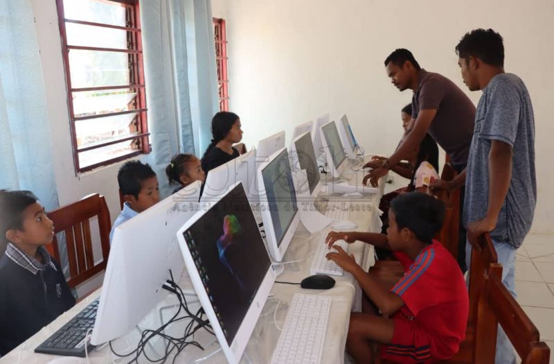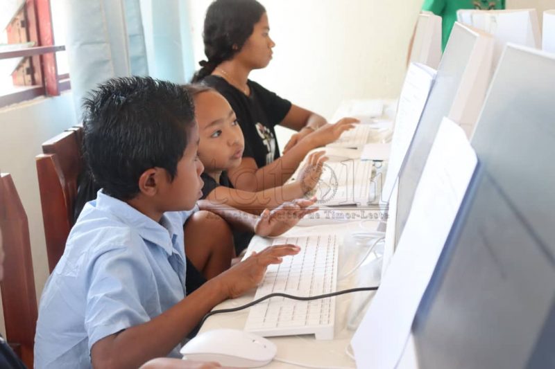 FOTO ATUÁL: Labarik sira tuir formasaun lian inglés ho komputadór iha Maliana