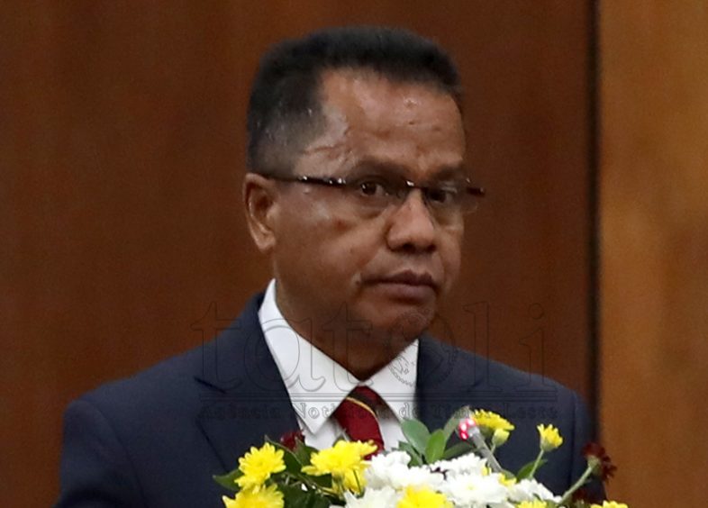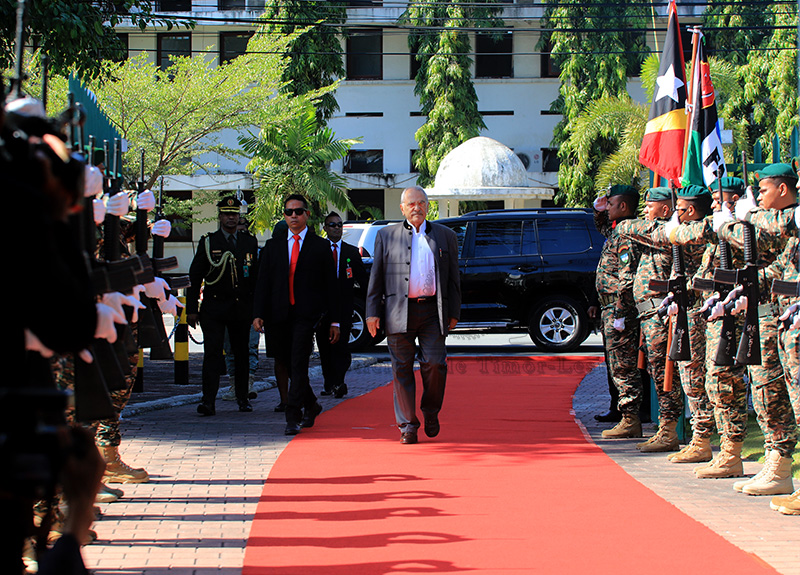 Prezidente Repúblika, José Ramos Horta, akompaña hosi Prezidente Parlamentu Nasionál (PNN), Aniceto Longuinhos Guterres Lopes, partisipa abertura sesaun solene kinta lejislativa iha kinta lejizlatura, iha Uma Fukun Parlamentu Nasionál, kinta (15/09). Imajen Tatoli/Francisco Sony.