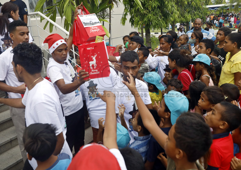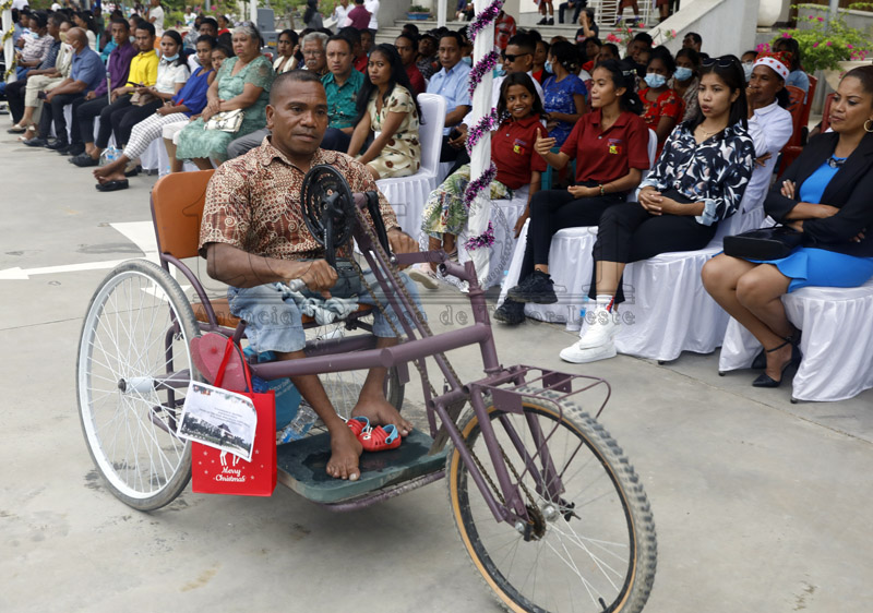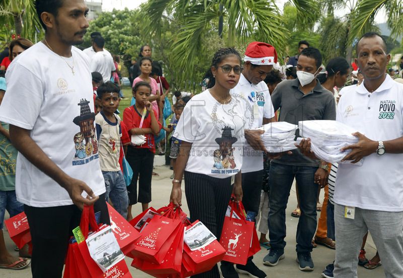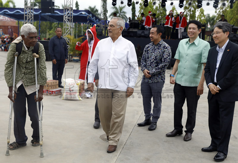 Prezidente repúblika, José Ramos Horta entrega prezenti ba defisiente no ferik sira iha selebrasaun Natal ho Povu iha arredór Palásiu Prezidensiál, Bairru-Pité, Dili, kuarta (21 dezembru 2022).Imajen Tatoli/António Daciparu