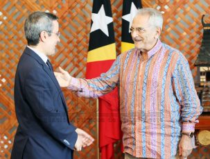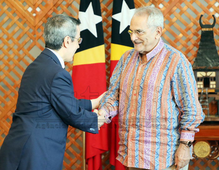 Prezidente Repúblika, José Ramos Horta, hala’o enkontru ho Sekretáriu Estadu edukasaun Portugal, António Leite, iha Palásiu Prezidensiál Nicolau Lobato, Bairru-Pité, kinta (16/03). Imajen Tatoli/Egas Cristovão