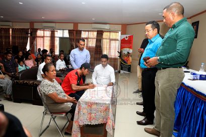 Traballadór Timor-oan sira hala'o juramentu molok atu ba servisu iha Austrália, iha salaun SEFOPE Dili, kinta (05/10). Imajen Tatoli/Francisco Sony