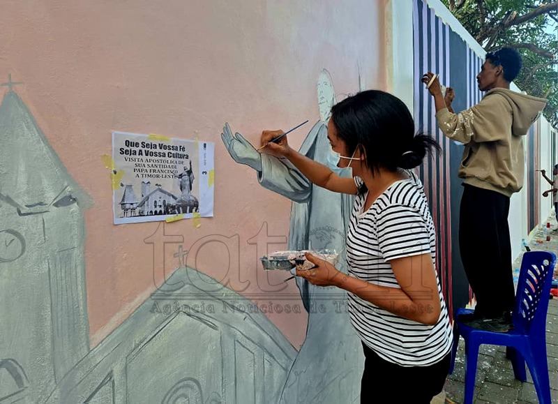 FOTO ATUÁL: Joven sira pinta hela dezeñu sira iha parede-lolon