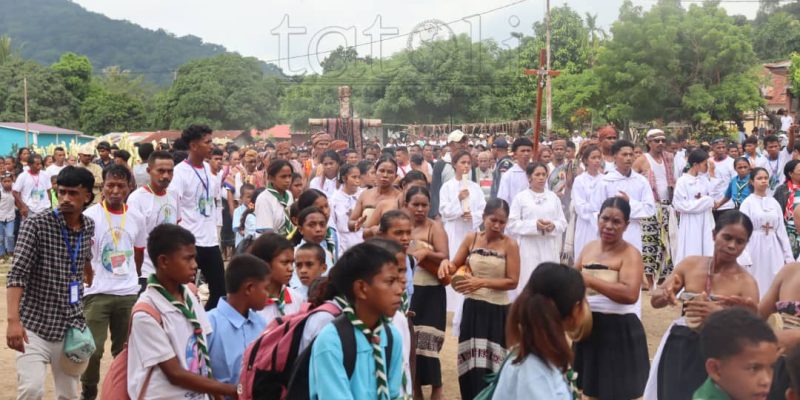 BOBONARU, 23 Abríl 2025 (TATOLI)—Sarani sira iha suku Molop, kuarta 23 Abrí 2025) ne’e, iha tuku 13h30, entuziasmu hamriik lolo-liman, hananu hodi simu prezensa ilas Krús Joven ne’ebé entrega husi sarani sira husi suku Lour, postu administrativu Bobonaru, munisípiu Bobonaru.